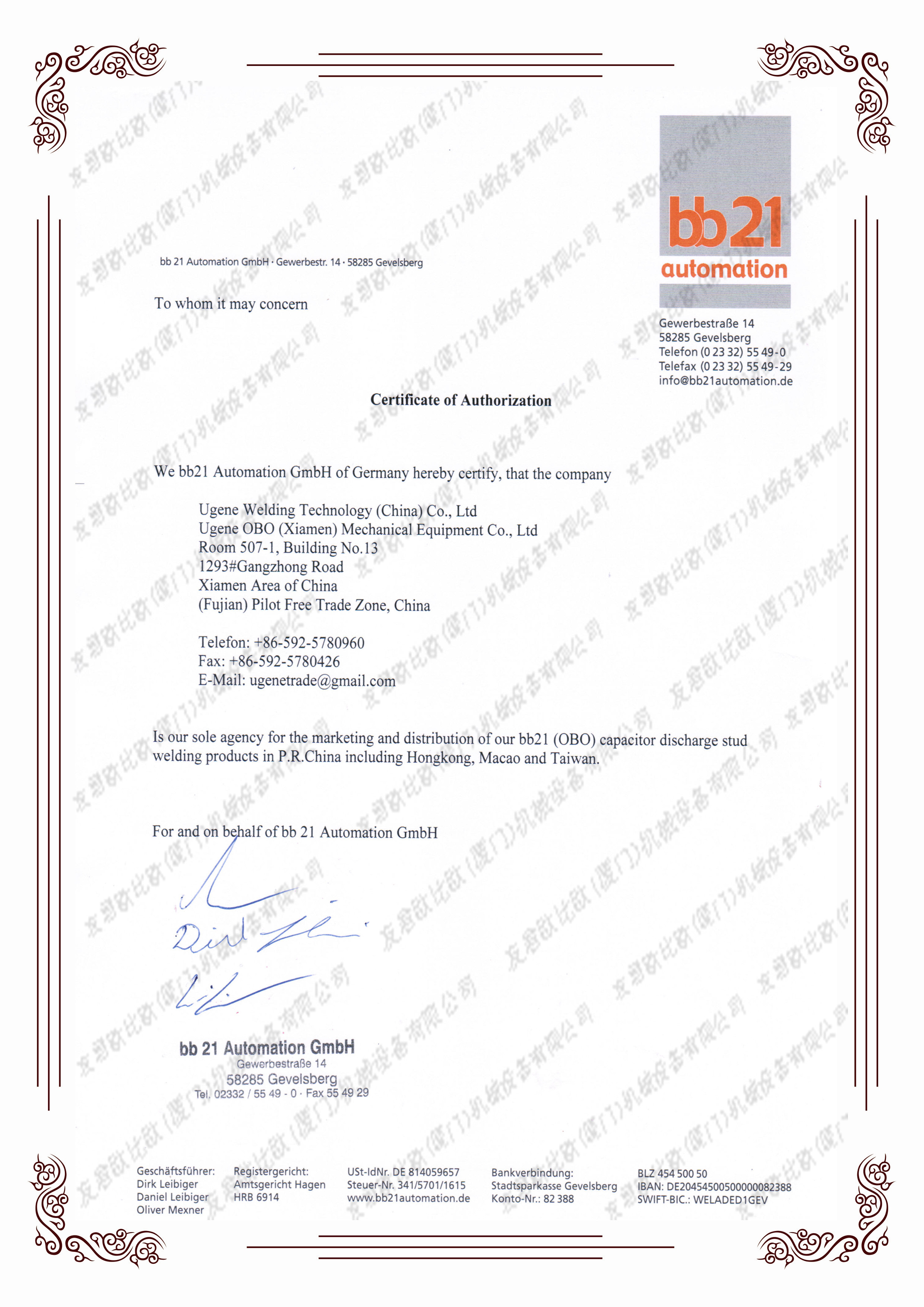 bb21螺柱焊機(jī)代表處,德國螺柱焊機(jī),bb21螺柱焊機(jī),進(jìn)口螺柱焊機(jī),螺柱焊槍,bb21螺柱焊槍,螺柱焊釘及螺柱焊接配件。德國bb21授權(quán)代表處-友君歐比歐(廈門)機(jī)械設(shè)備有限公司